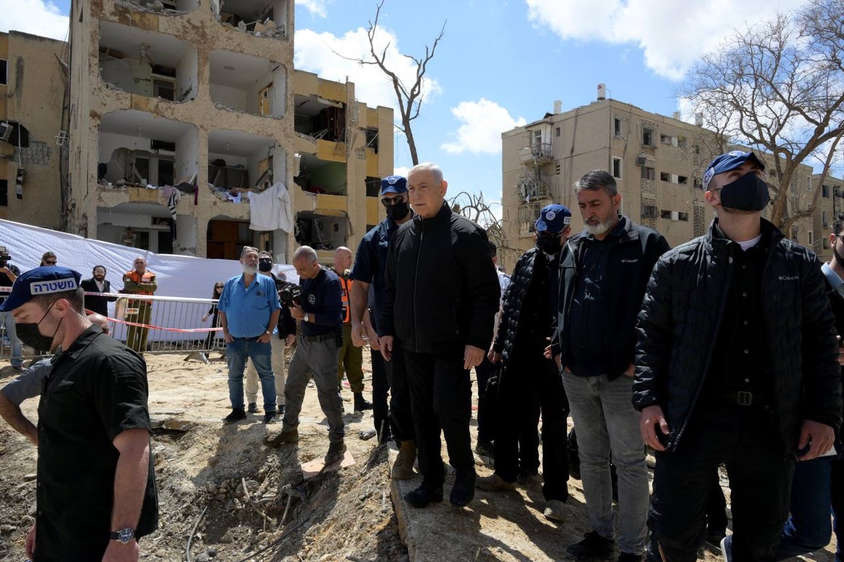 فيديو | رئيس حكومة إسرائيل بنيامين نتنياهو يتفقد مواقع الأضرار في عراد وديمونا