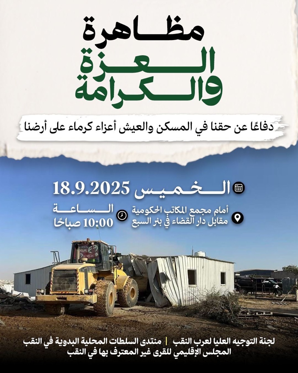 دعت لجنة التوجيه العليا لعرب النقب، بالتعاون مع منتدى السلطات المحلية البدوية والمجلس الإقليمي للقرى غير المعترف بها،…